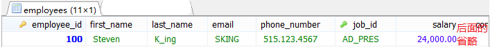#②查询员工的信息,满足Salary>①结果 SELECT * FROM employees WHERE salary>(SELECT salary FROM employees WHERE last_name='Abel');