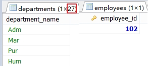 #案例2.查询员工号=102的部门名。 SELECT department_name FROM departments; ============== SELECT employee_id FROM employees WHERE employee_id = 102;