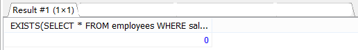 查询工资3W的员工信息 SELECT EXISTS(SELECT * FROM employees WHERE salary=30000);