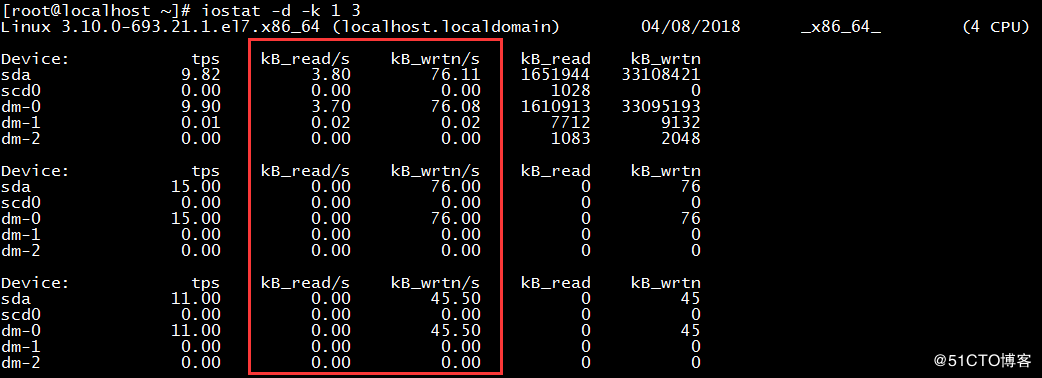 KB_read/s、KB_wrtn/s 每秒读写数据量,主要根据磁盘每秒最高读写速度评估。