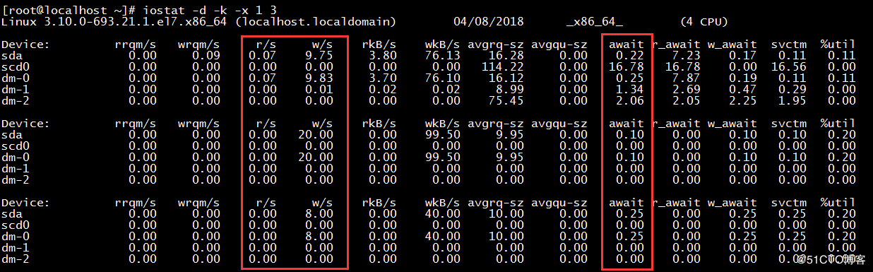 r/s、w/s:每秒读写请求次数,可以理解为IOPS(每秒输入输出量),是衡量磁盘性能的主要指标之一。