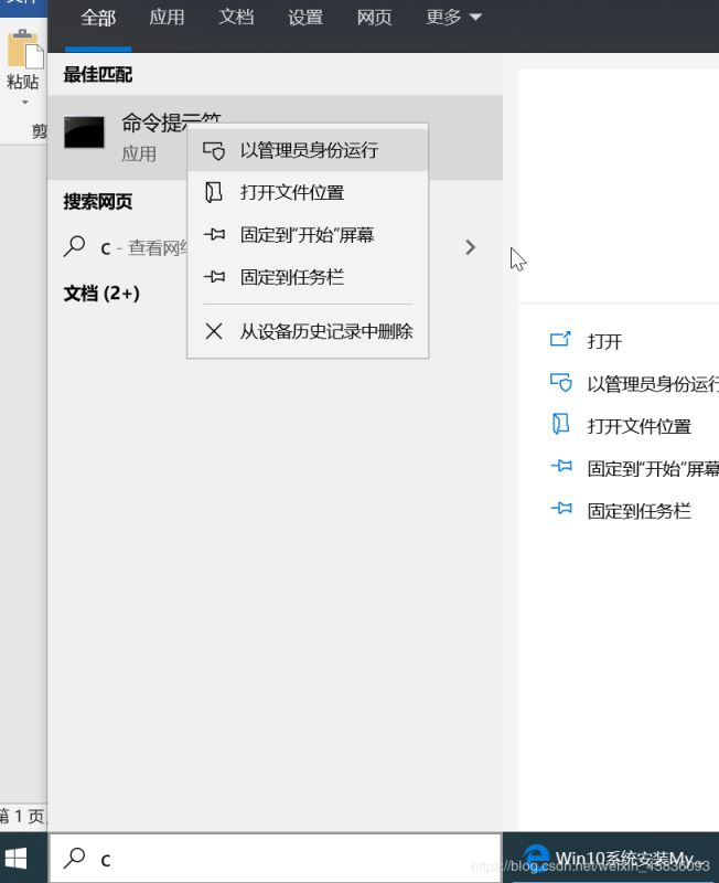 对着第一个桌面应用击右键,选择“以管理员身份运行”选项,就可以以管理员身份打开命令行窗口。