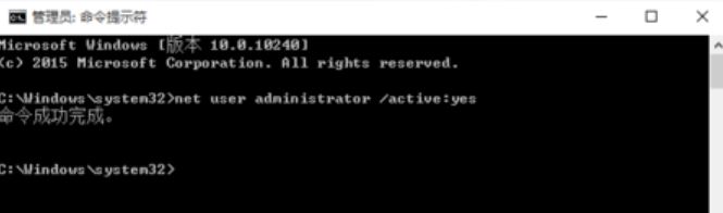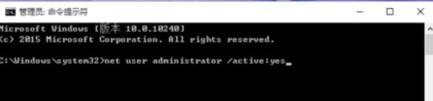 接下来,我们在命令行窗口中输入"net user administrator /active:yes",然后按下回车键。