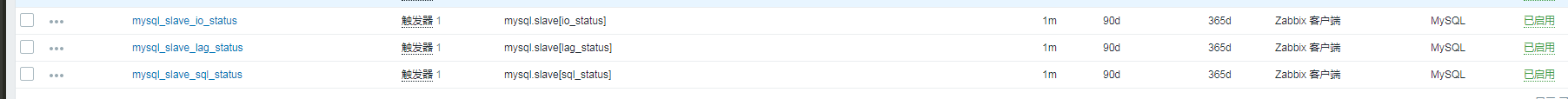 /etc/zabbix/scripts/check_mysql_slave.sh io_status /etc/zabbix/scripts/check_mysql_slave.sh sql_status /etc/zabbix/scripts/check_mysql_slave.sh lag_status
