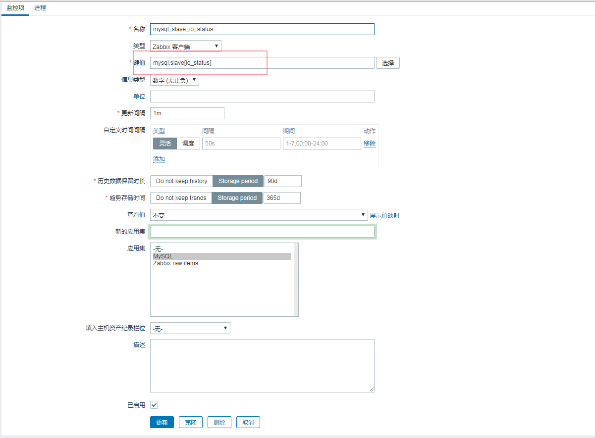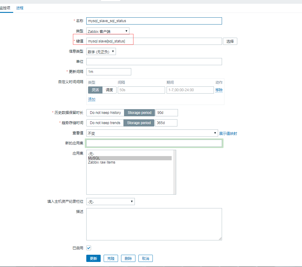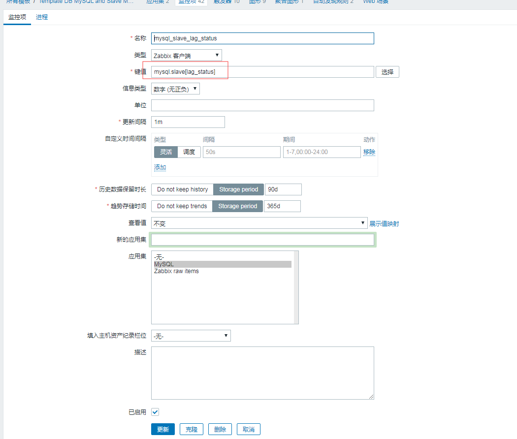 (6) 在zabbix web上克隆原来的MYSQL模板后添加监控项和触发器和图形