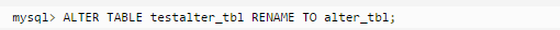 尝试以下实例将数据表 testalter_tbl 重命名为 alter_tbl:
