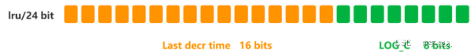 在 LFU 算法中,Redis对象头的 24 bits 的 lru 字段被分成两段来存储,高 16bit 存储 ldt(Last Decrement Time),低 8bit 存储 logc(Logistic Counter)。