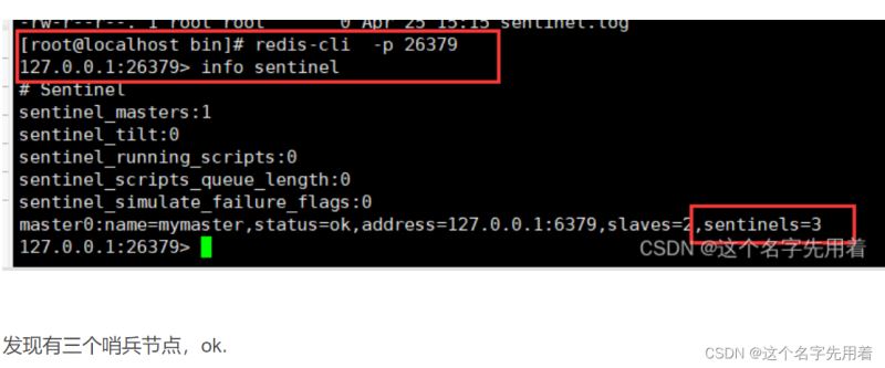 启动后查看sentinel信息:redis-cli -p sentinel的端口号