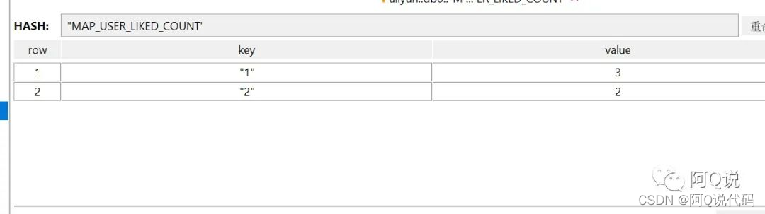 (2)某用户被点赞的数量统计: MAP_USER_LIKED_COUNT 为键值, 被点赞用户id 为 filed, count 为 value