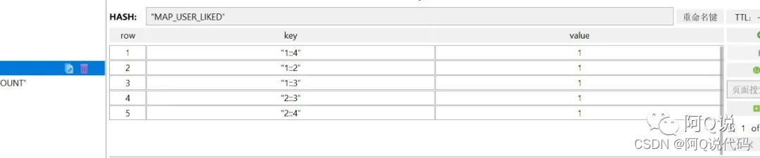 (1)某用户被其他用户点赞的详细记录: MAP_USER_LIKED 为键值, 被点赞用户id::点赞用户id 为 filed, 1或者0 为 value