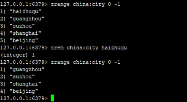 geo的底层原理还是zset,我们可以使用zset命令操作geo,比如移除geo里的城市。
