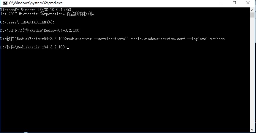进入redis解压目录以后,输入服务命令:redis-server --service-install redis.windows-service.config --loglevel verbose