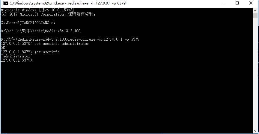 在命令行模式下进入redis的解压目录,然后启动redis客户端: