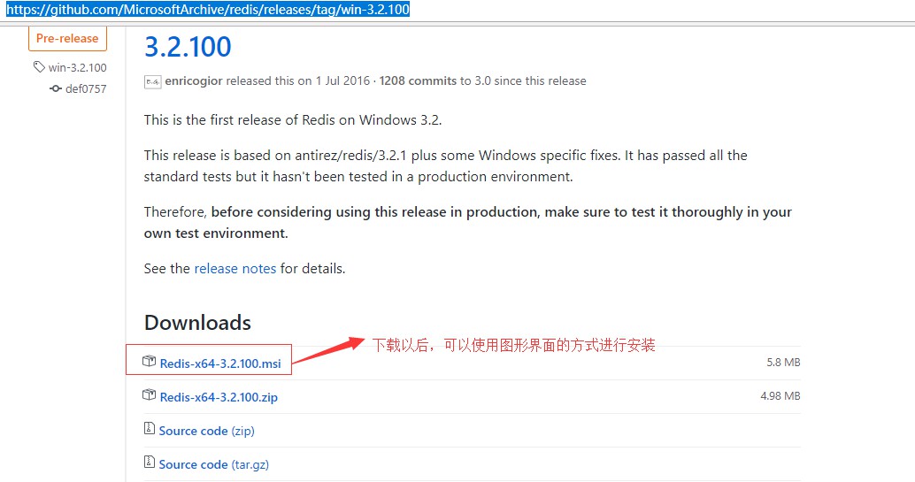 目前Redis的官网上面只提供Linux版本的下载,要下载Windows版本的,只能在github上下载,github下载地址:https://github.com/MSOpenTech/redis/tags
