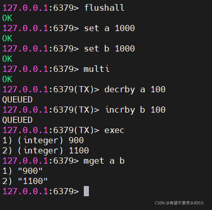 开启事务后所有操作都会进入到一个队列中,提交时一起执行