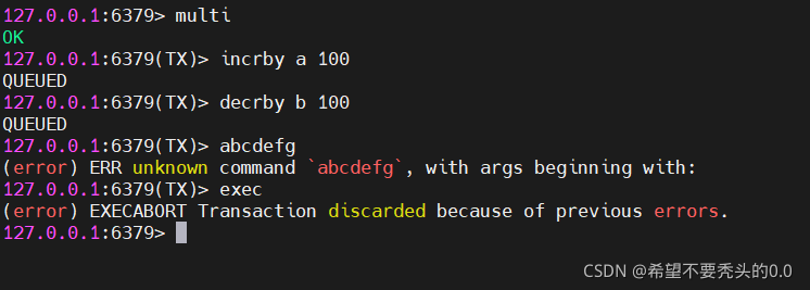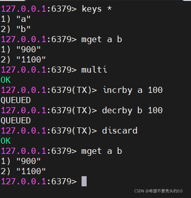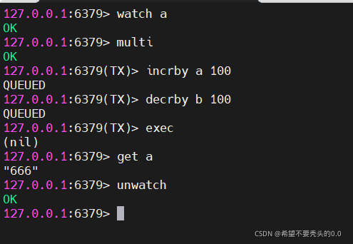 - watch 监控,如果监控的值发生变化,则提交事务时会失败