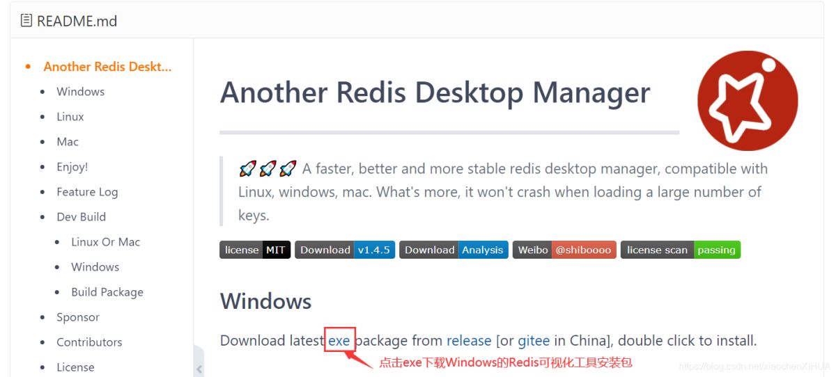②Redis可视化管理工具下载地址:https://gitee.com/qishibo/AnotherRedisDesktopManager