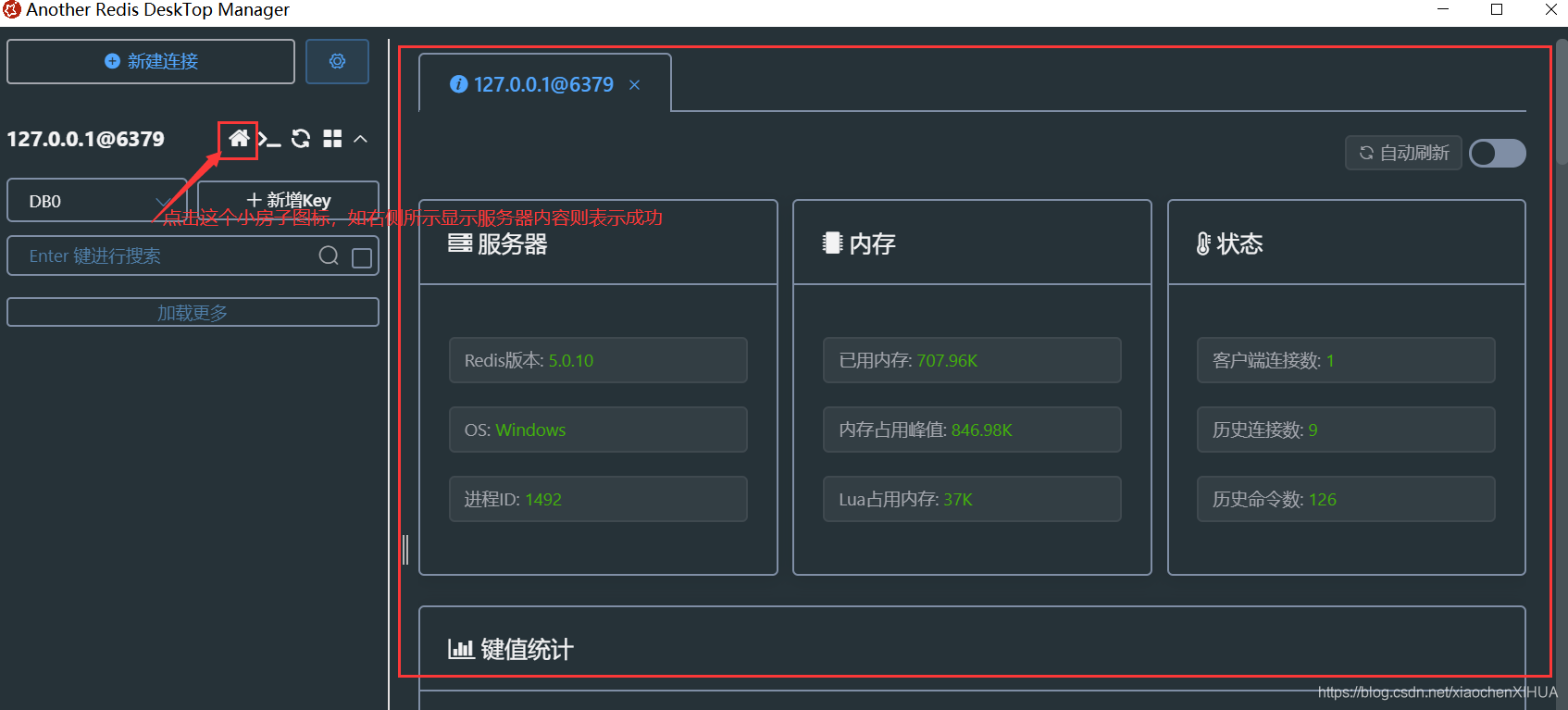 3.3、启动Redis可视化管理工具连接远程Redis服务