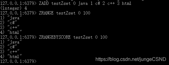 存值:zadd key [NX|XX] [CH] [INCR] score member [score member ...] 取值: ZRANGE key start stop [WITHSCORES]