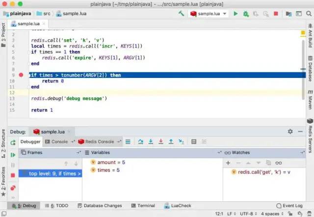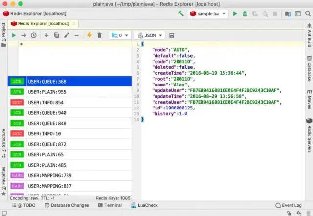 这个插件最大的特点就是能支持lua脚本的编写和调试,这在其他软件中是不曾看到的。以前在一个业务中大量用了lua进行redis操作,虽然尝到了redis lua原子性和性能上的甜头,但是在编写调试的时候,那叫一个痛苦,因为不能在debug所以每次都需要返回一个值来检查是哪里出了错。看到这个工具,悔恨没早点发现这个插件,付费也愿意