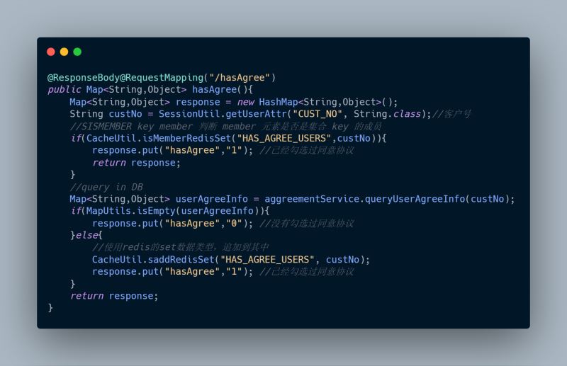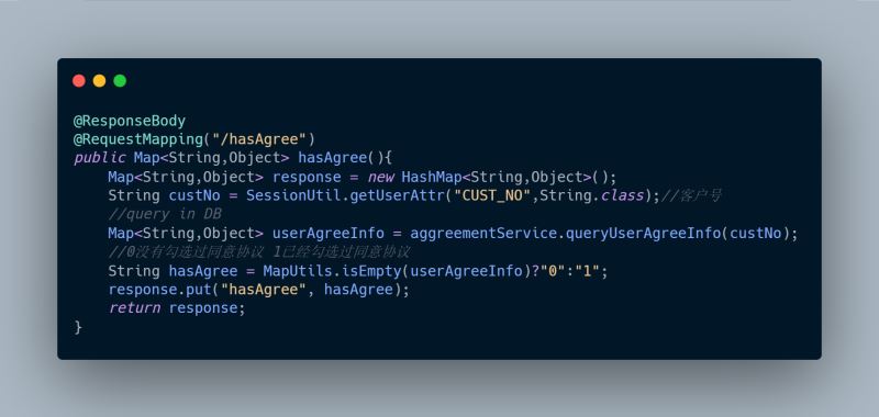 1、hasAgree(),查询该用户是否已同意协议