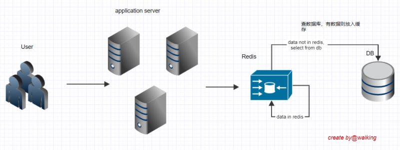 考虑到每次查库很浪费,那我们使用缓存好不好? 进来先查缓存有没有对应的数据,缓存里有就直接返回,没有则查库,库里有就存缓存。这样redis就分担了一部分数据库的压力。