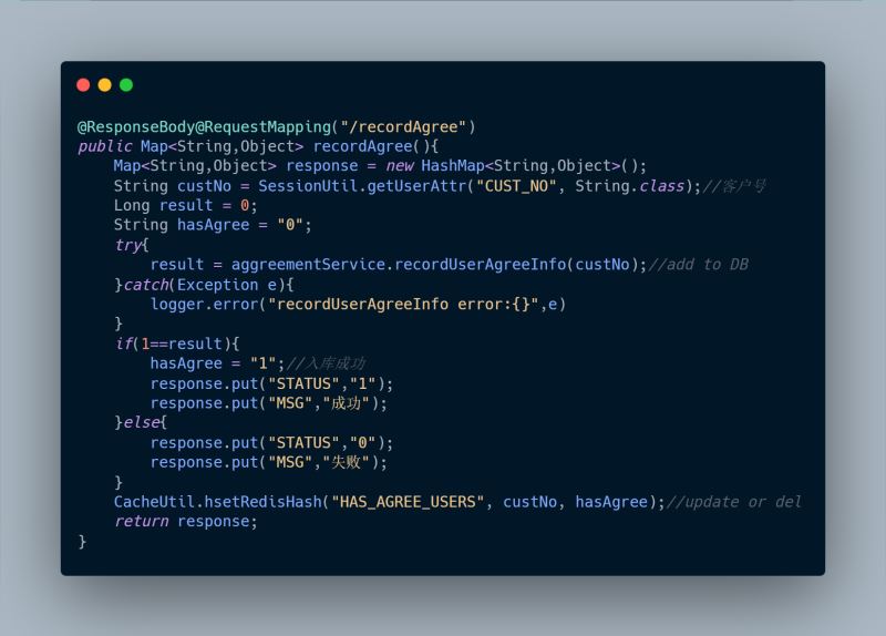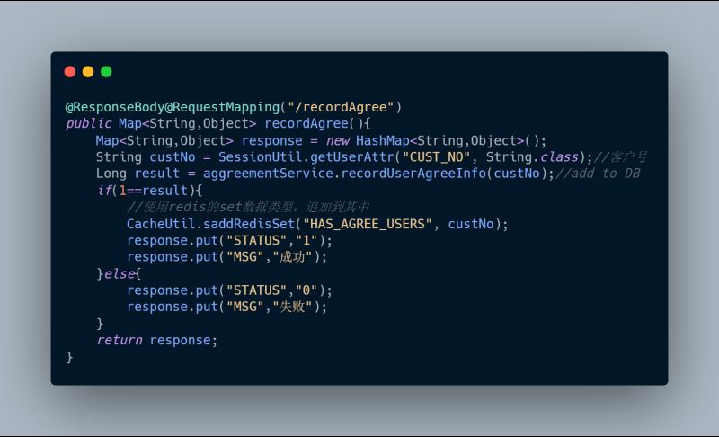 例如,当用户点了同意,前端就调后台的recordAgree方法将该记录记录到数据库,即这条记录是立马插入到数据库的。