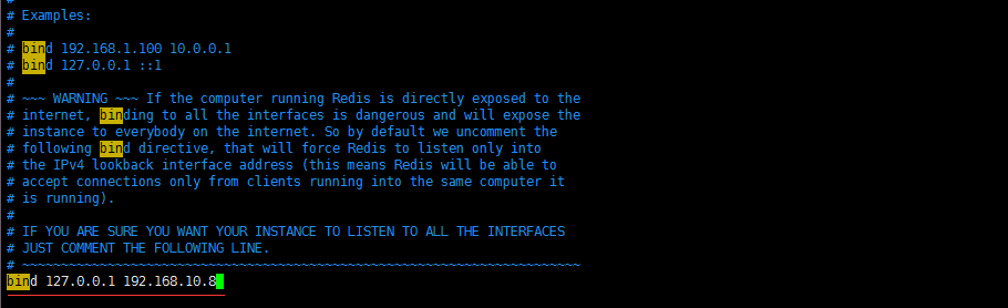 bind这里配置要注意,默认是只有一个127.0.0.1,这个时候只能自己连接,其他局域网内是连接不上的。所以,需要配置多个 IP ,这样就可以局域网内进行连接了。
