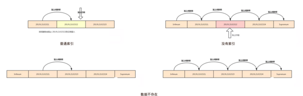 - 如果没有索引,则对扫描到的所有记录和间隙都加锁,如果不匹配行锁将会释放只剩下间隙锁。回忆一下上面讲的数据页的结果中又一个***记录和最小记录,Infimum 和 Supremum Record,这两个记录在加间隙锁的时候就会用到。