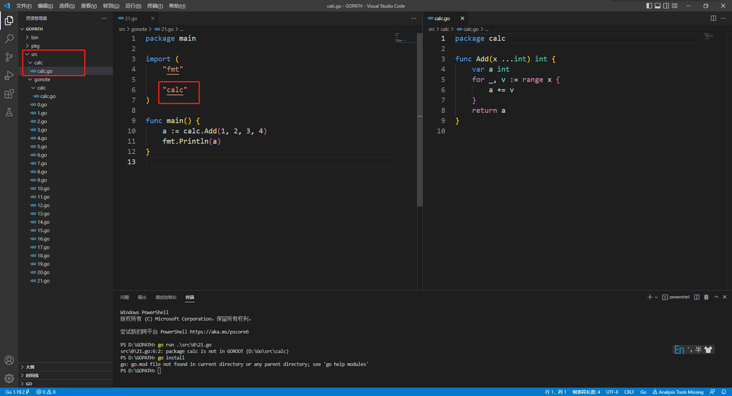 正在自学go语言,今天学到package包,如图,自定义了一个包,但是引入一直提示包不存在,希望路过的大神指正一下,到底是哪里的问题,跪谢!