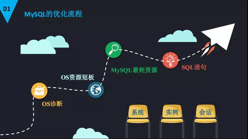 对于开展 MySQL 优化一个基本的流程如下:我们首先要登陆到操作系统,通过操作系统的命令进行优化。