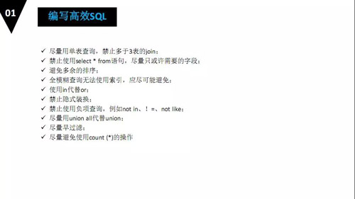 这里有编写高效 SQL 语句的原则,这个原则我们 DBA 要知道,同时要通知业务方的研发,让他们也知道。