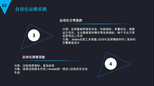 如果你已经有大的量的时候就要平台化,在自动化的数据库上进行拓展。以下是我们在自动化运维的实践经验。