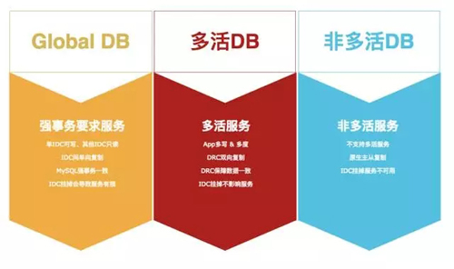 我们按照业务的用途,给它划分了多种 DB 服务类型。为什么要总结这个呢?因为有一些类型,我们是不需要复制的,所以要甄别出来,首先第一个多活 DB,我们认为它的服务需要做多活的。