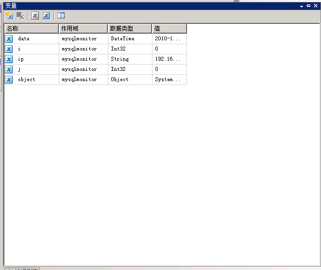 2 新建ssis 包 命名为 mysqlmonitor 并创建如下变量
