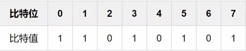 我们设比特位索引为index,假如我们要计算比特位为7的比特值,只需要将原值直接跟1进行与运算就行了。要计算比特位为6的比特值,只需要将原值右移1位,再跟1进行与运算。以此类推,要计算第index位的比特值,只需要先右移(7-index)位,再跟1进行与运算即可。