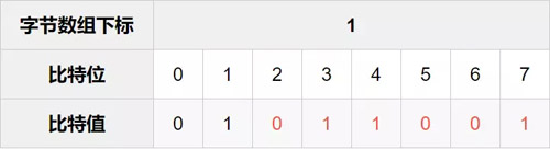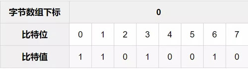 我们先计算出比特索引从0到9包含在哪一段字节数组中,前面说了,只需要将对应的索引除以8,再向下取整就行了。从而可以得知比特位索引从0到9对应的是下标从0到1的字节数组。