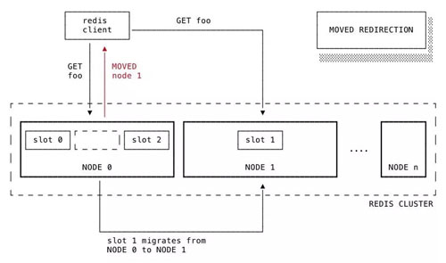 如果 Redis 群集中的某个节点接收到一个无法处理的命令,并不会尝试将该命令转发给其他节点。相反,客户会被告知向其他节点尝试发送该命令。这是通过 MOVED 响应来实现的,MOVED 响应消息包含了新的目标地址: