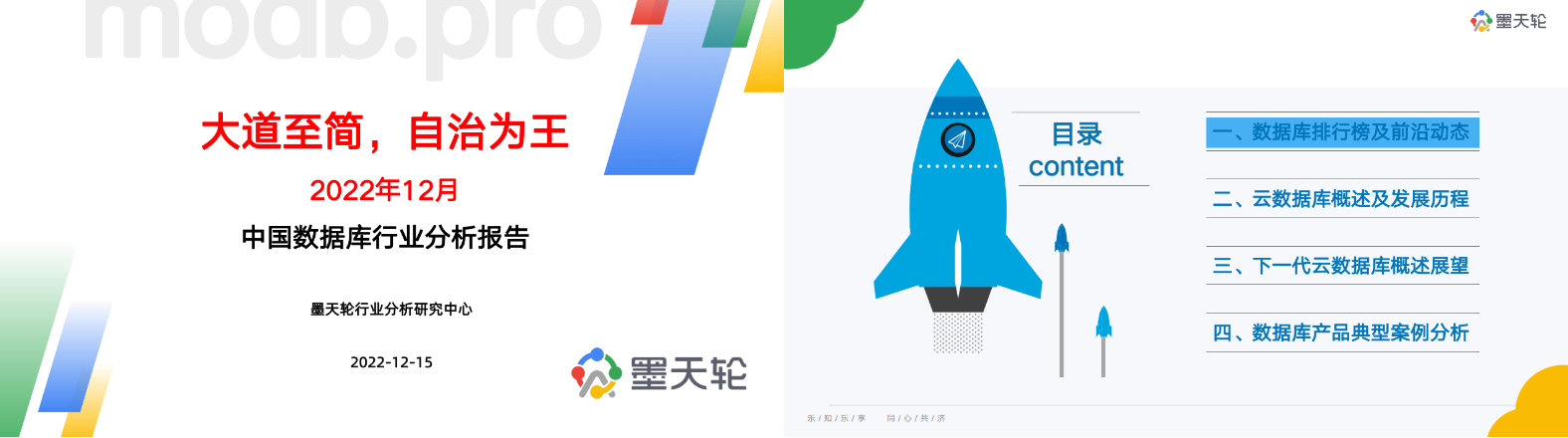 为了帮助大家及时了解中国数据库行业发展现状、梳理当前数据库市场环境和产品生态等情况,从2022年4月起,墨天轮社区行业分析研究团队出品将持续每月为大家推出最新《中国数据库行业分析报告》,持续传播数据技术知识、努力促进技术创新与行业生态发展,目前已更至第九期。另外给大家预告一个好消息:墨天轮年度数据库行业分析报告正在筹备中,大家敬请期待!