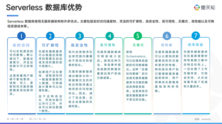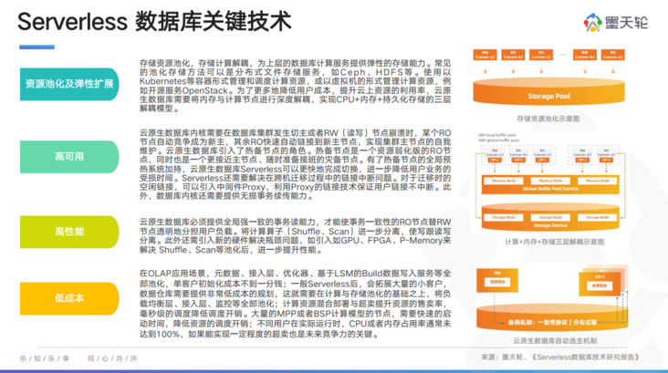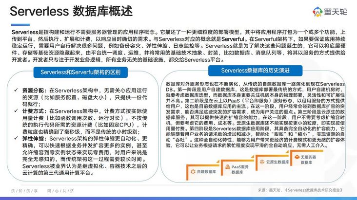 本期报告则为大家梳理了 Serverless 数据库技术基本概念、核心能力与优势特点、应用场景等内容。此处因篇幅所限仅展示其中几张,大家可以下载报告获取更多内容。