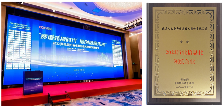 - 人大金仓凭借多年对经济数字化转型做出的贡献,荣获“2022行业信息化领航企业”奖。