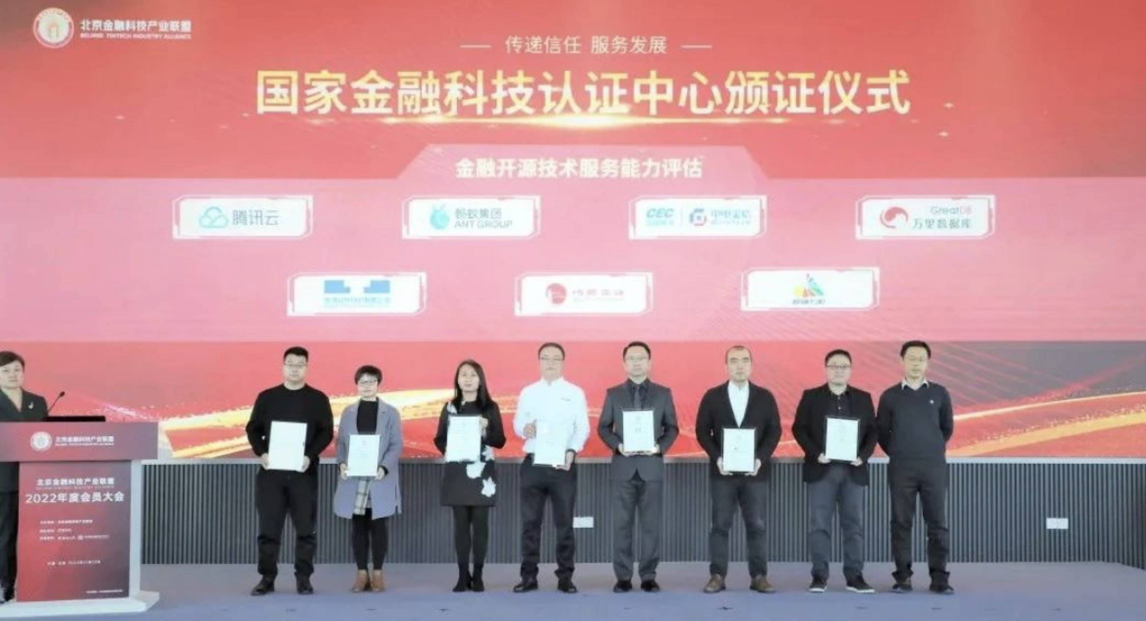 11月13日,北京国家金融科技认证中心颁布了首批金融开源技术服务能力参评机构名单。腾讯云、万里数据库、统信软件、中电金信通过了金融开源技术服务能力评估,成为首批通过国家金融科技认证中心评估的单位之一。