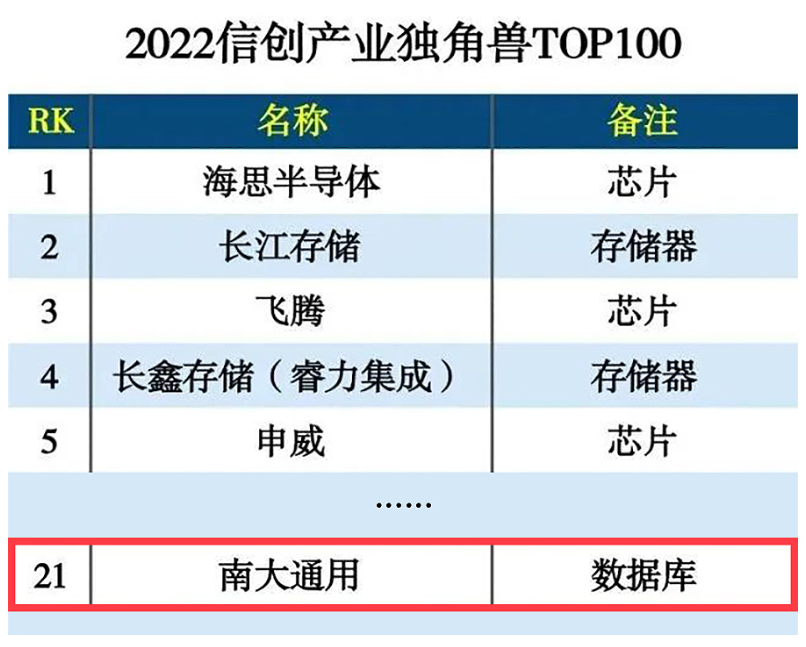 11月14日,《互联网周刊》联合德本咨询、eNet研究院发布了“2022信创产业独角兽TOP100”榜单,南大通用、智臾科技成功入围,证明了其在信创产业领域所具备的核心技术实力受到权威认可。