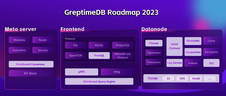 Greptime DB是 Greptime(格睿云)研发打磨的时序数据库产品,于2022年4月启动。Greptime 计划首先通过开源并不断迭代自研的分布式、高性能、存储计算分离的云原生时序数据库 Greptime DB ,打造一个富有生命力、可持续的开源社区;再者,提供一套基于 GreptimeDB 的 Database as a Service 云服务Greptime Cloud, 在 pay as you go 的模式上发力,为用户提供更细颗粒度的计价方案,在保障用户获得优质服务的同时,助力用户实现运维成本优化。Greptime Cloud服务将在明年 1 月份做 Alpha 内测,包括 DBaaS 服务以及 Greptime Cloud for Observability 产品。