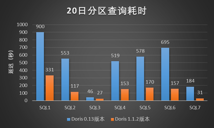 我们基于 Doris 1.1.2 版本搭建了一个和小米线上 Doris 0.13 版本在机器配置和机器规模上完全相同的测试集群,用于向量化版本上线前的验证。验证测试分为两个方面:单 SQL 串行查询测试和批量 SQL 并发查询测试。在这两种测试中,我们在保证两个集群数据完全相同的条件下,分别在 Doris 1.1.2 测试集群和小米线上 Doris 0.13 集群执行相同的查询 SQL 来做性能对比。我们的目标是,Doris 1.1.2 版本在小米线上 Doris 0.13 版本的基础上有 1 倍的查询性能提升。