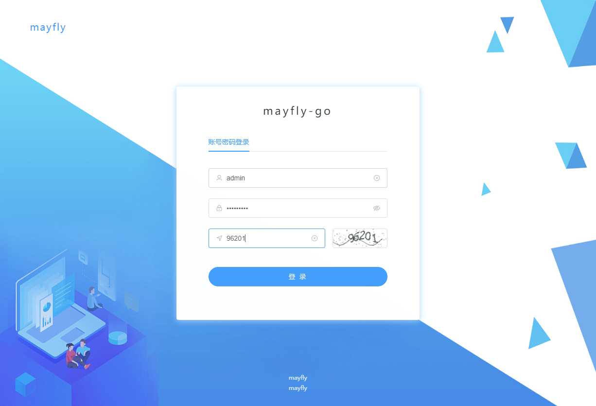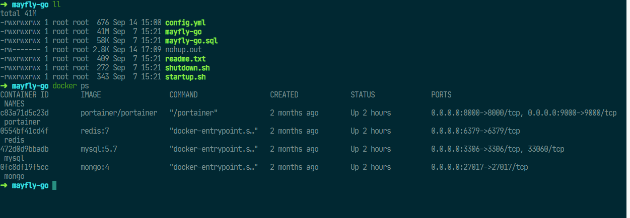 mayfly-go数据库,导入mayfly-go.sql文件,之后使用startup.sh命令启动服务;