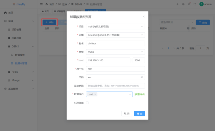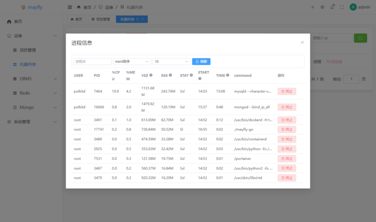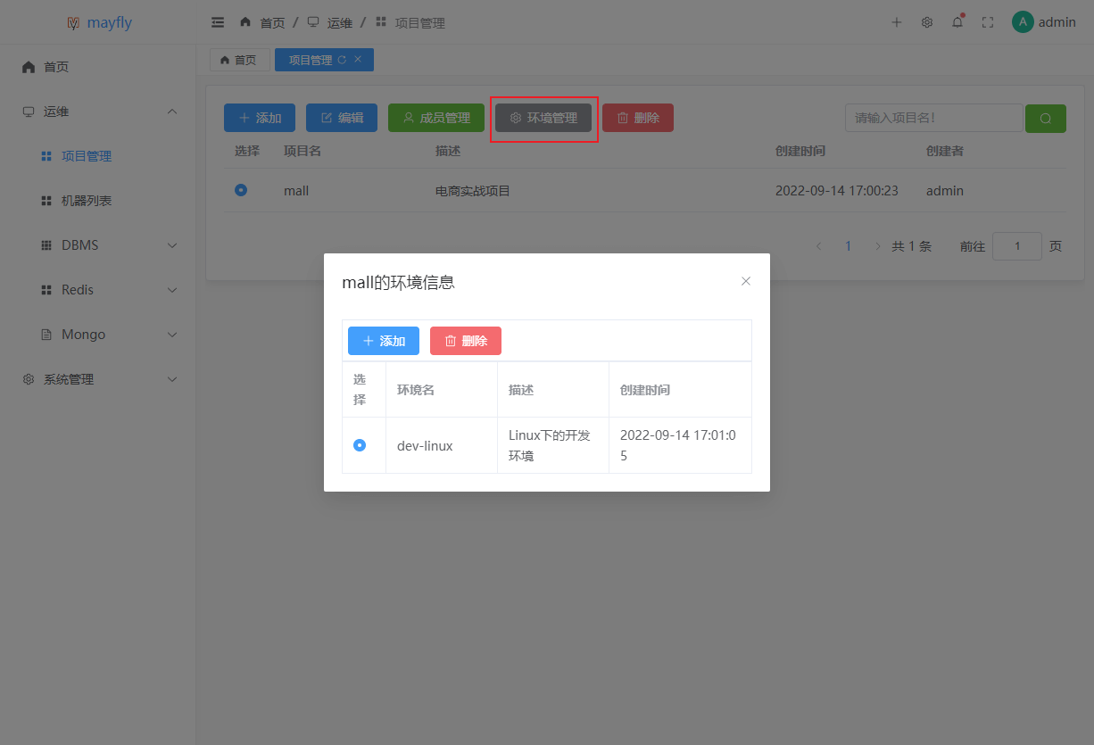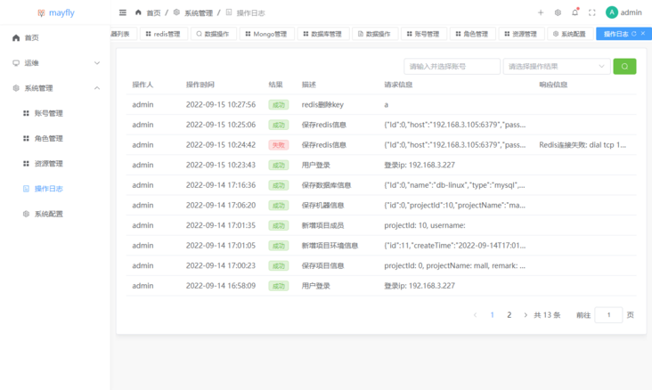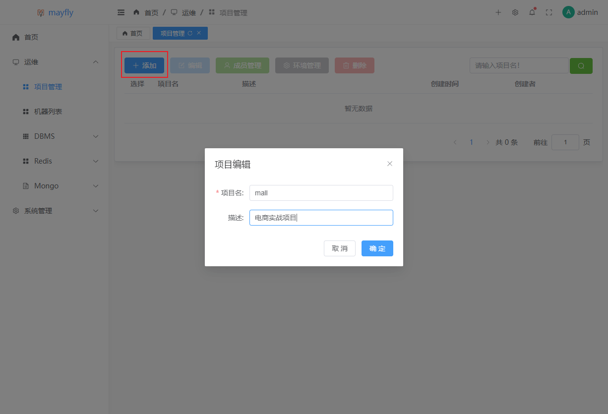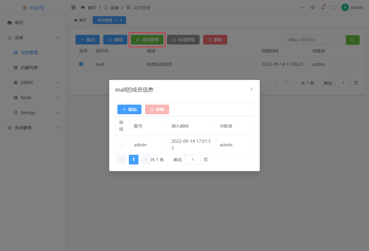 admin,至此就可以开始使用mayfly-go来管理服务器了。机器管理