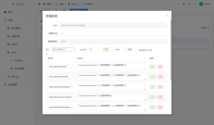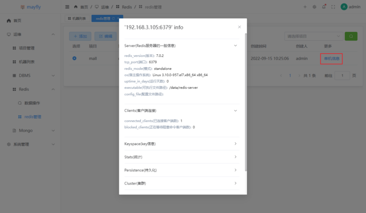 mayfly-go也支持Redis的管理,可以用来查看Redis的信息及数据管理。