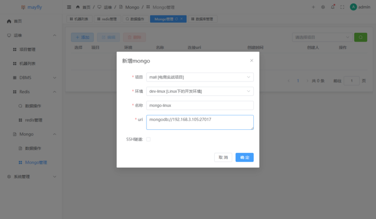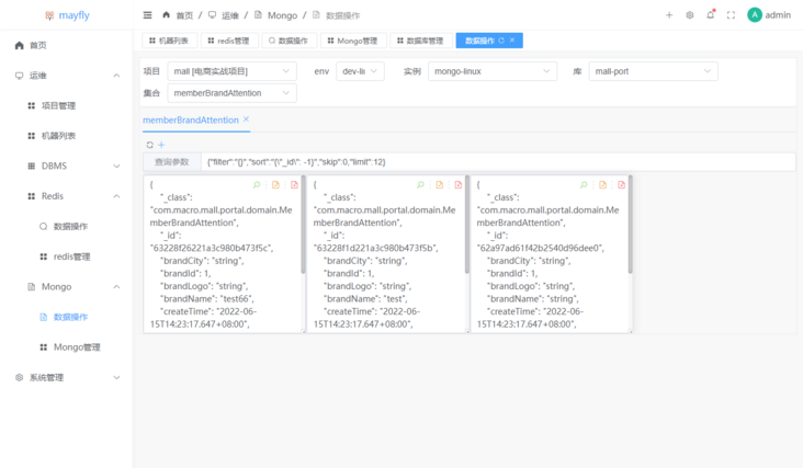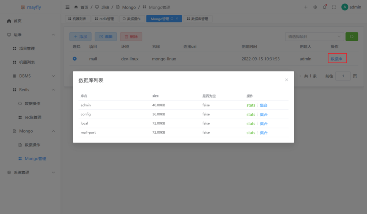 mayfly-go也支持MongoDB的管理,可以用来查看MongoDB的信息及数据管理。