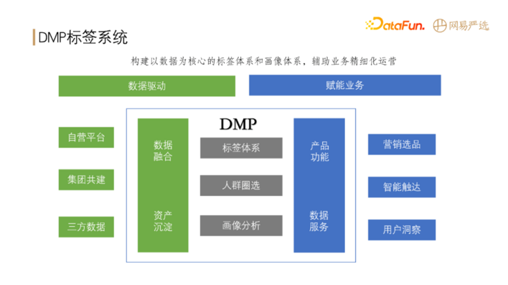 DMP 作为网易严选的数据中台,向下连接数据,向上赋能业务,承担着非常重要的基石角色。